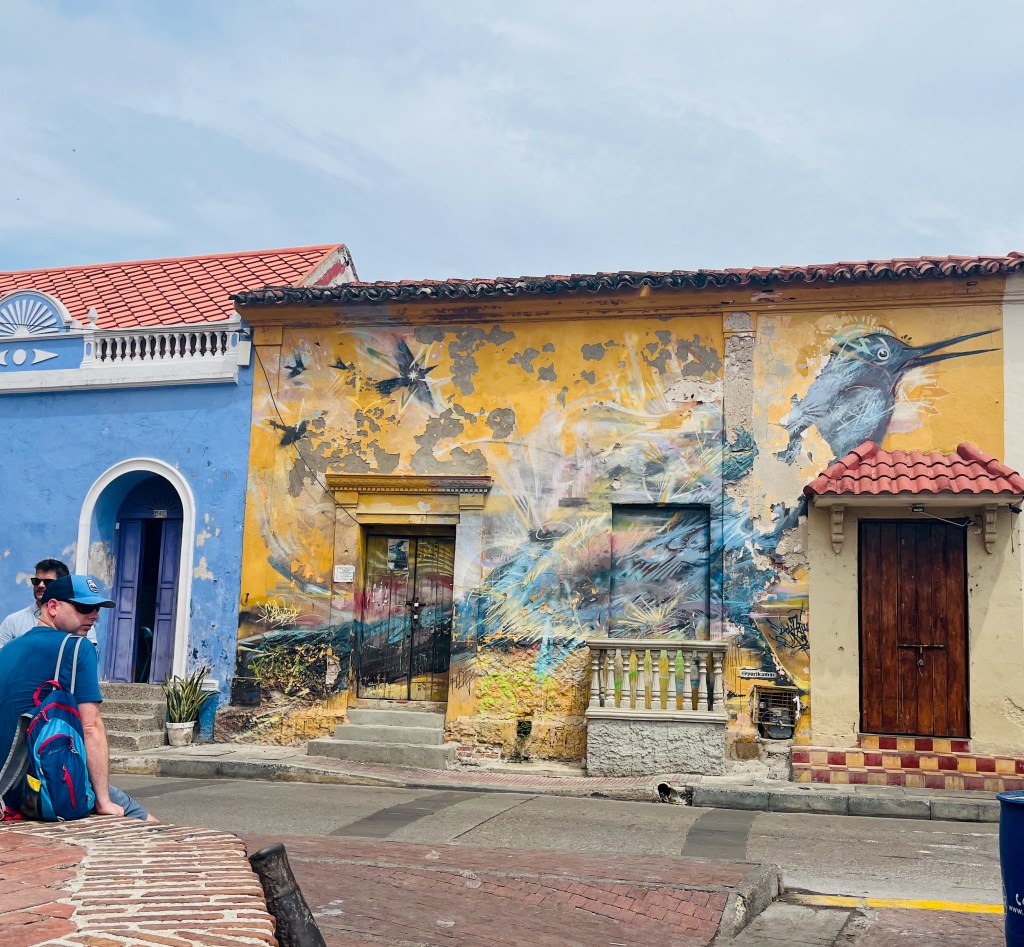 On our visit to Cartagena, Colombia, we walked through the beautiful Getsemani neighborhood on a self-guided mural tour. After the kids were satisfied with the amount of checkmarks on the Scavenger Hunt they created, we offered to take a picture of their favorite mural so they could recreate it later in their notebooks.