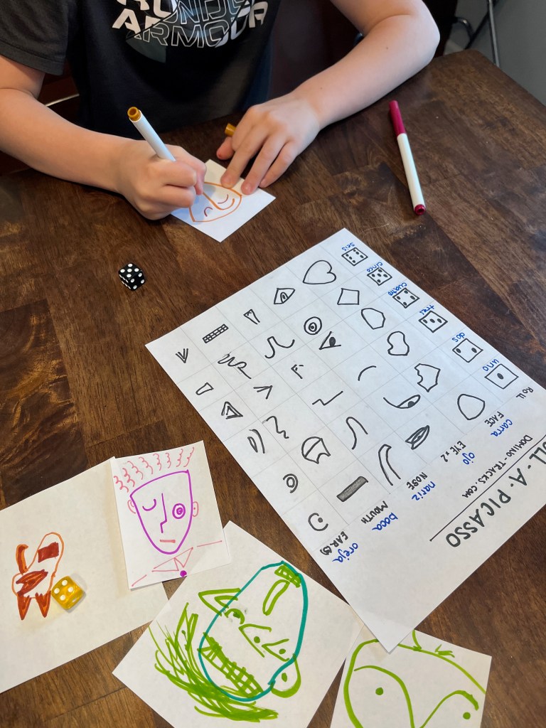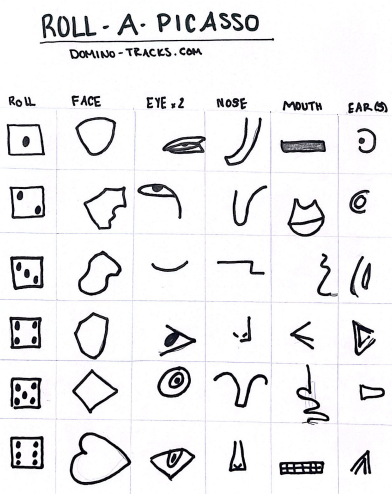 Picasso created over 50,000 works of art, and they’re spread all over the world. To create your own Roll-A-Picasso activity, I recommend searching the works at the museum you’re headed to. Then, draw the different face components from those.