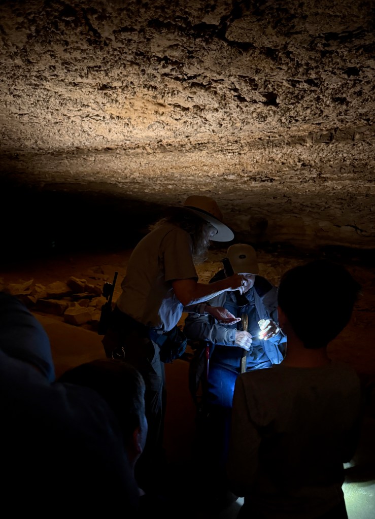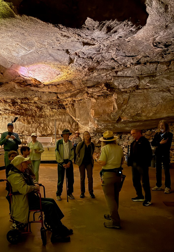 For my Granddad, the Accessible Tour was a perfect way to experience Mammoth Cave. The tour uses an elevator to descend to the Snowball Dining Room full of sparkling gypsum formations and interesting artifacts. Our Park Guide shared surprising cave history as the tour continued over a smooth, lit concrete path down Cleveland Avenue. As an added bonus, she was trained to use a deeper voice range that is easier for those who have experienced hearing loss.